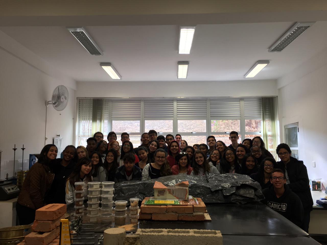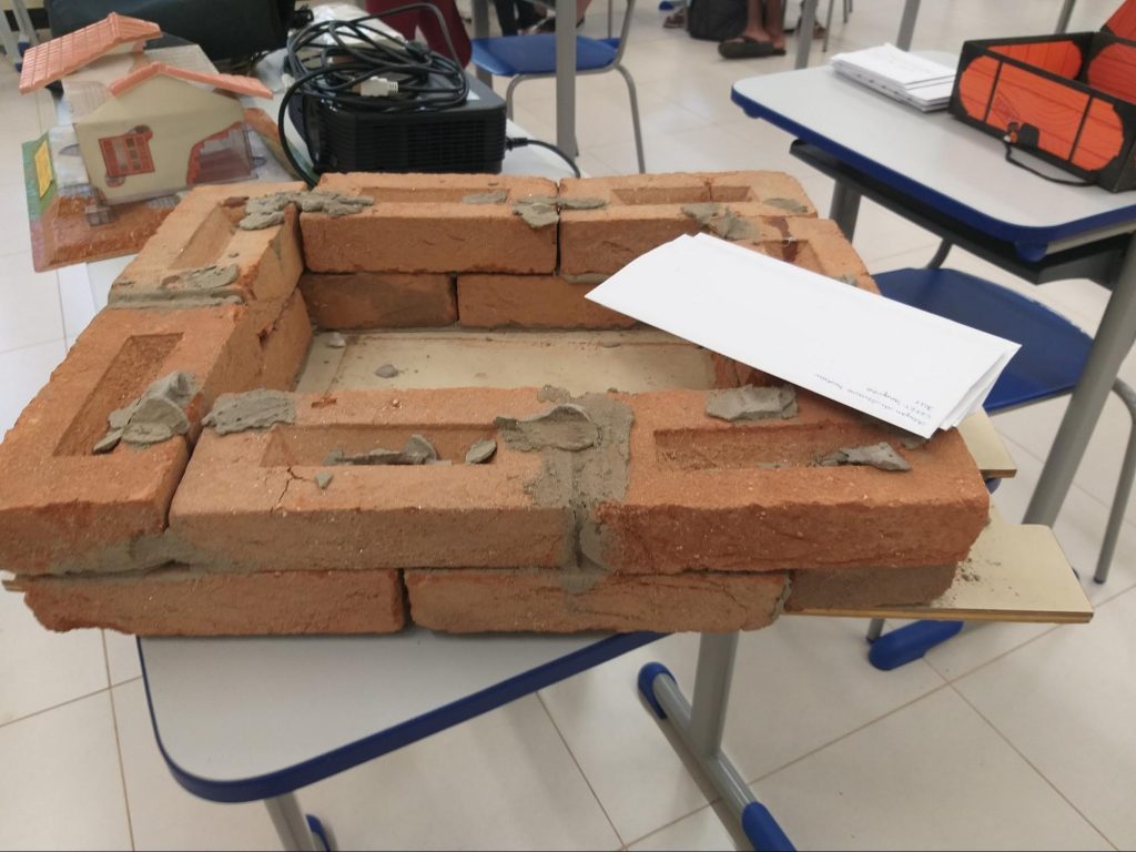 As cartas do 1° ano de Edificações de 2019 são guardadas na cápsula da turma (maquete de alvenaria).