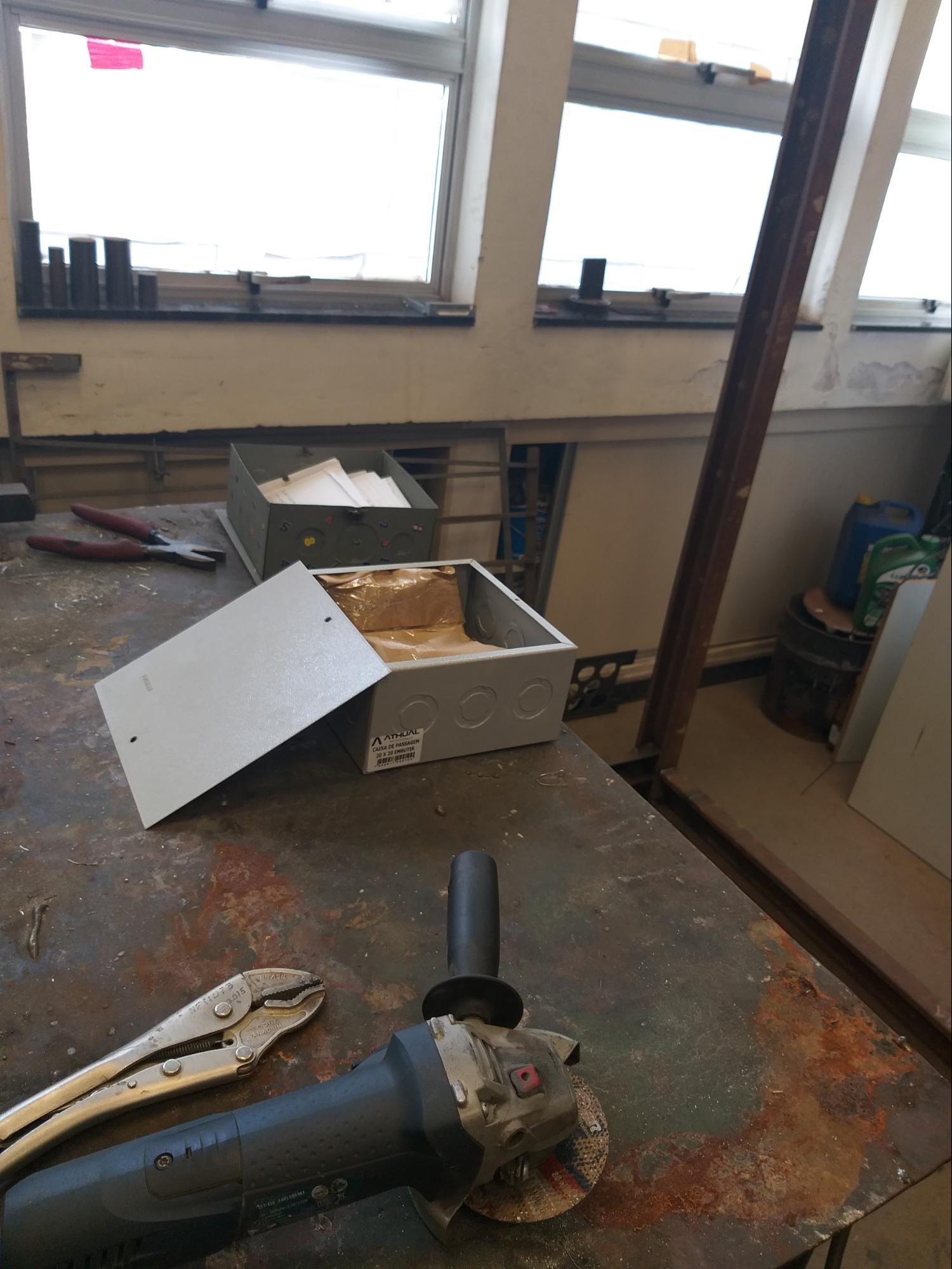 As cartas do 1° ano de Mecatrônica de 2019 são guardadas na cápsula da turma (caixa de aço).