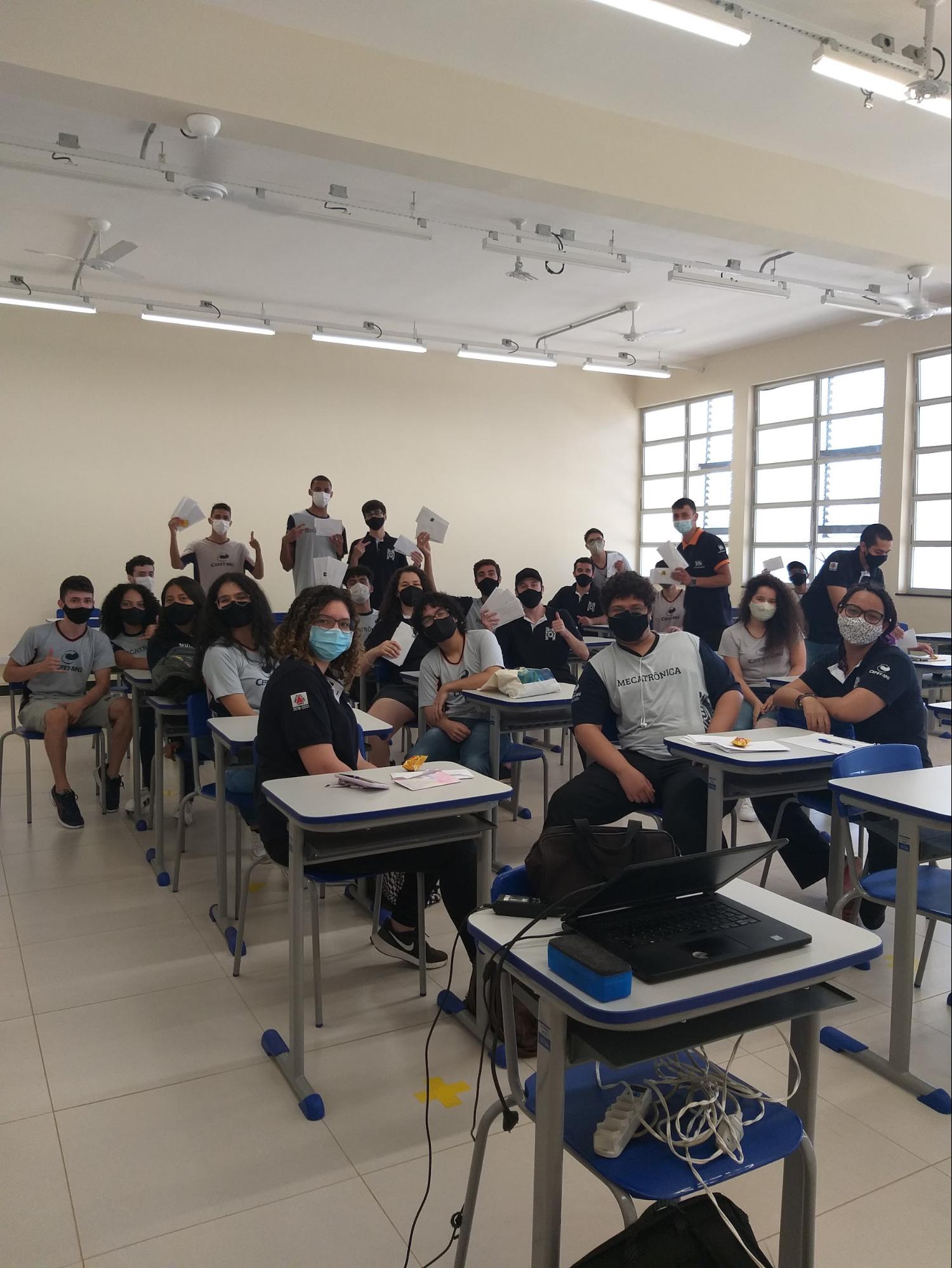 A dinâmica da Cápsula do Tempo proposta aos alunos do primeiro ano, tinha como objetivo que os estudantes escrevessem uma carta para si mesmos, para que fossem abertas dois anos depois, quando já estivessem no terceiro ano, em 2021. Com apoio dos professores Carlos, da Mecatrônica, Wedson da Informática e Meg, da Edificações, junto ao técnico de laboratório Eduardo, definiu-se objeto correspondente à característica de cada curso para guardar essas correspondências. Assim, uma caixa de aço, uma CPU e uma maquete de alvenaria foram os espaços simbólicos para Mecatrônica, Informática e Edificações, respectivamente, cujas correspondências foram lacradas por meio da solda, do hardware específico e do cimento, elementos marcantes de cada curso. Assim, entre os dias 02, 06 e 07 de agosto de 2019, alunos dos primeiros anos realizaram essa etapa do projeto “Entre cartas..”. Eles escreveram para si mesmos e fizeram as cápsulas do tempo, na expectativa de abrirem suas cartas em fevereiro de 2021. Os professores da área técnica e de formação geral também contribuíram, assinando uma mensagem para todos e auxiliando na organização das cápsulas temáticas, num momento marcante e descontraído. No entanto, com a inesperada pandemia, a abertura das cápsulas só foi possível ser feita durante a retomada gradual das atividades presenciais no CEFET-MG, no dia 22 de dezembro de 2021: e com todas as medidas de biossegurança em dia, as turmas abriram suas cápsulas e receberam suas cartas, em momentos de variadas emoções e muita história pra contar!
